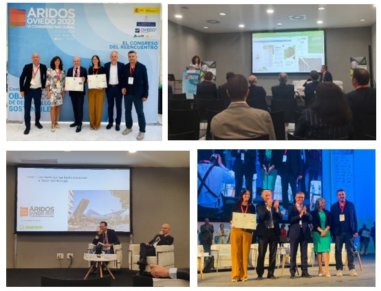 También obtuvimos un segundo lugar en la categoría de Economía Circular para el proyecto Tecnosoles en la cantera la Falconera. Una propuesta que dota de valor añadido a las restauraciones, ya que utiliza materiales de poco valor procedentes de la propia actividad extractiva y residuos, muy bien elegidos mediante normativa específica que contiene enmiendas orgánicas. Esta actividad ayuda a la fijación de CO2 en el subsuelo y acelera el proceso natural de restauración, contribuyendo además a la reducción de residuos en vertederos gracias a la valorización de estos.