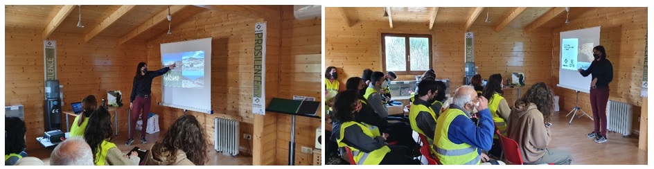 La primera introducción a la explotación fue por parte del encargado de la Falconera Pere Puigdomènec, que explicó cómo funciona toda la actividad extractiva, la tipología de la piedra y cómo se realizan las voladuras. Una vez en la casita de madera, Elena Colomina del departamento de marketing comentó los objetivos de sostenibilidad de Molins y Cementos Molinos, así como los detalles de la futura restauración de la Falconera, incidiendo en la flora, la fauna y la relación con la comunidad.