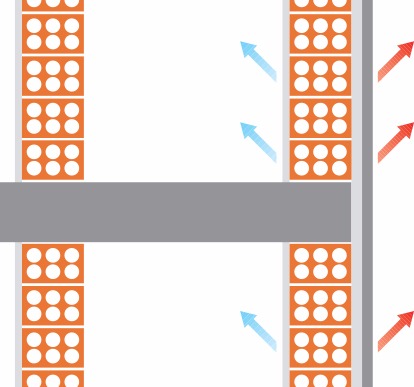 Com que no disposeu de càmera d’aire, l’intercanvi d’energia calorífica amb l’exterior es produeix a través de la fàbrica de maó i dels lliuraments d’aquesta amb els forjats.