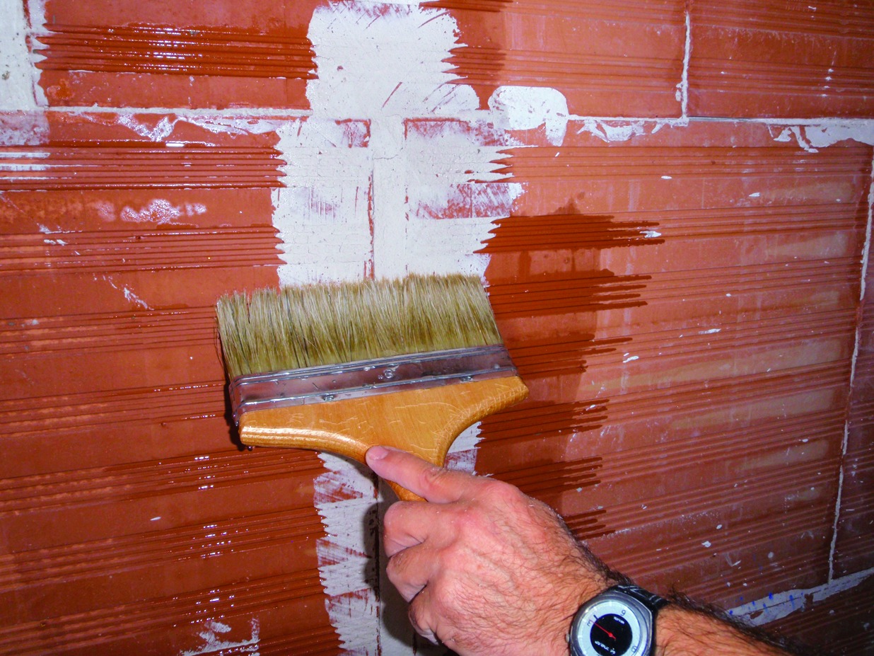 L’absorció d’aigua del maó gran format i la cola en base escaiola utilitzat per a la seva instal·lació, condicionen l’elecció d’un morter cua adequat.