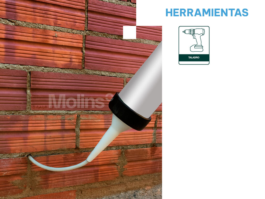 Tratamiento de humedades por capilaridad en muros mediante la creación de una barrera hidrófuga por inyección mediante una red de taladros realizada previamente. |